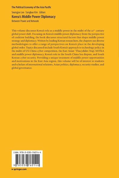 Chapter 1. Introduction.- Chapter 2. Thucydides on Thucydides Trap: A Reading with the Emphasis of Middle Powers and its Application in the East Asian Context.- Chapter 3. Roles of Middle Power in East Asia: The Perspective of Network Theories of World Politics.- Chapter 4. Emerging Powers and a Middle Power: U.S.-China Competition and South Korea in Cyberspace.- Chapter 5. The Dilemma of South Korea as a Middle Power With Regards to the Conflicts Between the United States and China in the South China Sea.- Chapter 6. The Inter-network Politics of Cyber Security and Middle Power Diplomacy: A Korean Perspective.- Chapter 7. Power Shift, Power Diffusion, and Middle Power Diplomacy: MIKTA and Changes in Global Governance.- Chapter 8. Unpacking the Domestic Political Foundation of Middle Powers: Ups and Downs in South Korea's Middle Power Diplomacy toward China.