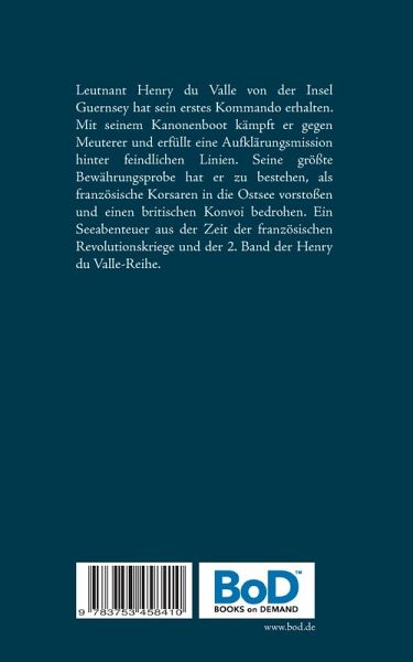 Leutnant Henry du Valle von der Insel Guernsey hat sein erstes Kommando erhalten. Mit seinem Kanonenboot kämpft er gegen Meuterer und erfüllt eine Aufklärungsmission hinter feindlichen Linien. Seine größte Bewährungsprobe hat er zu bestehen, als französische Korsa-ren in die Ostsee vorstoßen und einen britischen Konvoi bedrohen. Ein Seeabenteuer aus der Zeit der französischen Revolutionskriege und der 2. Band der Henry du Valle-Reihe.