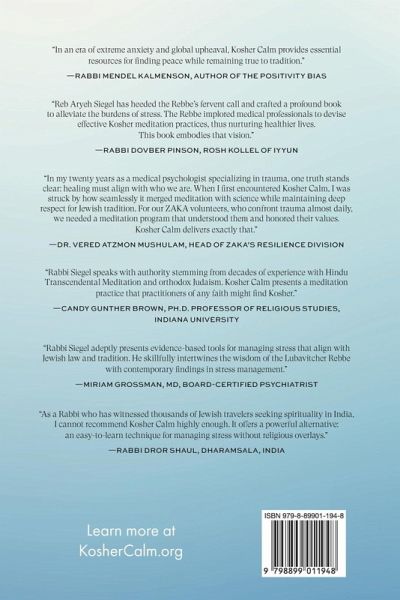 Kosher Meditation for Health and Healing Finding inner peace is more important than ever in today's world. Stress has become a constant companion, impacting our physical health, emotional well-being, and overall quality of life. Yet within us lies a natural antidote: the "relaxation response," our intrinsic mechanism for combating stress. Meditation is profoundly effective in eliciting this response. This book, inspired by the teachings of the Lubavitcher Rebbe, Rabbi Menachem Mendel Schneerson (1902-1994), offers a practical, Jewish-law-compliant approach to stress management through meditation. The Rebbe recognized a crucial need: Jews require effective, scientifically sound methods to cope with life's mounting pressures. His focus wasn't on mystical or spiritually oriented meditation practices but rather on establishing an effective, kosher approach to stress reduction-one that could help people lead healthier, more balanced lives. This book presents a simple, scientifically validated technique for activating the relaxation response. Straightforward and practical, this method is designed to help you manage daily tensions and enhance your overall well-being while adhering to Jewish law. At its core is a nondirective meditation technique using a focus word of your choice. This gentle and effortless approach allows the focus word to naturally guide your attention to quieter levels of the mind. The technique takes only minutes to master, opening the door to a lifetime of inner peace. Additionally, the book presents the Rebbe's insights on the critical role of belief, reframing, and positivity in health and healing. These teachings provide a comprehensive stress management and resilience-building approach, offering readers practical tools for personal transformation. The book also includes chapters examining yoga, Eastern meditation techniques, and mindfulness. These sections carefully analyze the halachic concerns associated with each practice while offering practical alternatives that allow readers to gain similar benefits without compromising Jewish law. For visual learners, the book includes links to a fifteen-minute animation in English and Hebrew titled "Learning How to Do Kosher Meditation." This visual guide provides a step-by-step walkthrough of the meditation practice, making the technique accessible and easy to understand.
