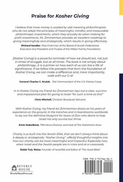 In "Kosher Giving," Avi Zimmerman, an esteemed leader in philanthropy and strategy, offers a groundbreaking approach to charitable giving. This conversational and practical guide is an indispensable tool for individual donors at all levels, especially those embarking on creating foundations or donor-advised funds. In this book you'll read about: * Heritage-inspired methodology. * Practical case studies from unique circumstances like the Hamas-Israel War. * A blend of crisis and normative giving insights. * Universal application of Torah-based giving principles. Book Highlights: The 3 M's of Kosher Giving: Learn to give in ways that are meaningful, mindful, and measurable. The 3 Pillars: Delve into the foundations of purpose, impact agents, and needs, and understand how they guide effective philanthropy. Heritage-Inspired Perspectives: Gain insights from the teachings of Maimonides on the "how" of giving, enriched by Zimmerman's deep understanding of heritage and tradition. * Strategic Giving: Master the art of commitment to impactful philanthropy. * 4-Step Philanthropy Plan: Navigate through the processes of designing, implementing, evaluating, and refining your philanthropy plan. * Supercharging Your Giving: Learn innovative strategies to enhance the impact of your contributions. * Shalom Giving: Discover a comprehensive vision for harmonizing purpose, needs, and impact in society. Key Features: Kosher Giving Journal: A personal tool to track your progress through the principles, perspectives, and planning process. Workbook: An Excel-based framework to design, align, and refine your philanthropic efforts. Real-Life Examples: Engaging stories from both crisis and normative giving situations, offering rich, practical case studies. Universal Lessons: While rooted in Torah-based principles, the lessons in this book have universal applications, making it a treasure trove for donors of all faiths. Avi Zimmerman, an MBA holder, brings his vast experience as an Executive Director, Founder, and CEO in various impactful organizations. His unique perspective is born out of intense experiences, including his role during the Hamas-Israel War. Check out his new book and get a whole new outlook on philanthropy for 2024. Endorsed by Dan Arbess, Founder of Xerion Capital Partners, as Israel's "Startup Nation" of philanthropy, this book is a must-read for anyone interested in making a lasting impact through their giving. Whether you're a seasoned philanthropist or just starting out, "Kosher Giving" will guide you to a more effective, fulfilling way of contributing to the world.