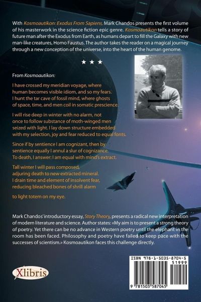 MARK CHANDOS is America's epic poet and philosopher. Witnessing the collapse of traditional Western civilization, Chandos recovers the highest Western concepts and embodies them in a new linguistic codex. He believes that there will be no recovery of Western literature until there is a new language of the Western achievement. Deeply studied in history and philosophy of the Ancient world, Chandos reexamines ancient mythologies showing that they have always been misinterpreted. He believes that only our generation is able to understand the real meaning of the combined narrative of all epic literature, from Gilgamesh to Homer, from Egyptian myth to Greek myth. In his essay, A New Theory of Poetry, Chandos shows there is a linguistic schism in American society (between scientific and vernacular speakers. He demonstrates that epic poetry is essentially a prophetic vehicle and formulates the idiom of consciousness. He makes a race for supremacy. Why should the reader Read the KOSMOAUTIKON Epic Cycle? 1) KOSMOAUTIKON has information of the long count of the Human Condition. No other work of American literature observes the ancient origins of the human genome. No other poem projects the force of the strong poet into a Space faring civilization. Only the KOSMOAUTIKON contains the long count of human civilization. 2) KOSMOAUTIKON does not repeat any modernist clichés. Modernism can only detect modernism. Modern literature can only regurgitate modernist linguistic codices - a fascination with disease, medical mythos, and the omnipotence of laboratory science. KOSMOAUTIKON accuses the madness of this modernist experiment. Instead, KOSMOAUTIKON detects the astral position of the human mind. A story is told that places man in a position of power in relation to the universe. Modernism makes treats men and parasites. In story Theory man is the center of all things, since only the human has a terra- forming mind. 3) KOSMOAUTIKON creates a new linguistic codex to project a new advance in the human Genome. A new linguistic structure must always prepare the way for any human advance. "I had to remove your planet - and then your bones." 4) KOSMOAUTIKON tells the story of Rogue males. Who are our rogue males? Alexander, Christ, Cesar, Dante, Michelangelo, Leonardo Da Vinci, Caravaggio, Henry VIII, Edward De Vere (Shake-speare), Beethoven, Francis bacon, Oscar Wilde (the list is long). The point? Western civilization has been made by dangerous rogue males. No other modern text would even dare to discuss the power of the rogue male. Where else will the reader find the truth? Modernism seeks to inoculate, medicate, or incarcerate the rogue male - early. Yet what is the truth? There will be rogues makes again - and they will change the human genome. This is the story of KOSMOAUTIKON 5) There is no other document that contains future speech. No Western person can be educated without first reading KOSMOAUTIKON. It does not matter your opinion of poetry or the poet. You have to deal with it. Most googled favorite lines from KOSMOAUTIKON: 1) We had to remove your planet - then your bones. 2) Observe my second sweat condense the juice loving bark, my song recovered stitch all numbered kiss close fit . . . 3) . . . then fix my sleep at that beam all-speeding from glow emitting north, my eye abreast a lover's shard of light. 4) The cauldron planet still beaconed red Five...You will not miss the globular element of your fire-burned ancestors. 6) When you could not yourself believe. I made you diamond tablets of belief. When you yourself could not detect the sky, I wrote the sun for you each day new. When you by yourself were congealed as frost, I dipped your brittle mouth still blue and flaked. When you could not lift your hands yourself to count, I raised your arm to rage against the beats of breath.