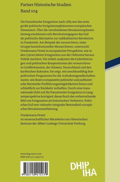 Die französische Emigration nach 1789 war das erste große politische Emigrationsphänomen europäischer Dimension. Über die verschiedenen Revolutionsphasen hinweg erschlossen sich Revolutionsgegner das Exil als politische Alternative zur radikalisierten Revolution in Frankreich. Am Beispiel der monarchiens, einer Gruppe konstitutioneller Monarchisten, untersucht Friedemann Pestel in europäischer Perspektive, wie in den 1790er Jahren Emigranten aus der Defensive heraus Politik machten. Die Arbeit analysiert die Exilerfahrungen und politischen Kooperationen der monarchiens in Großbritannien, der Schweiz, Deutschland und den karibischen Kolonien. Sie zeigt, wie sie politische Programme für die Aufnahmegesellschaften anschlussfähig machten, wie ihnen europaweite politische und publizistische Netzwerke Profilierungsmöglichkeiten boten und schließlich die Rückkehr ermöglichten. Durch eine transnationale Sicht auf die französische Emigration in Langzeitperspektive korrigiert dieses Buch das vorherrschende Bild von Emigranten als historische Verlierer. Politisches Exil war vielmehr integraler Bestandteil europäischer Revolutionserfahrung.
