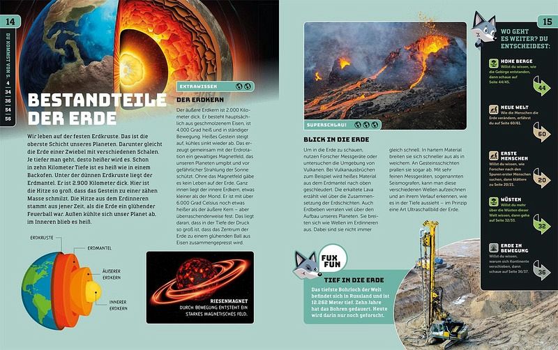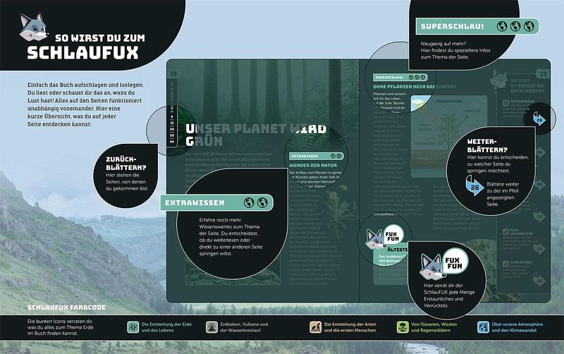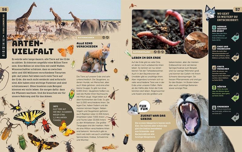 Mit dem SchlauFUX entdecken Kinder interaktiv das Thema Erde und begeben sich auf eine faszinierende Reise durch unseren Planeten. Jede Buchseite ist darauf ausgelegt, neue Wissensimpulse zu geben, die es den jungen Lesern ermöglichen, die Inhalte eigenständig und ohne feste Reihenfolge zu erkunden. Dank dieser Struktur können Kinder ihren Interessen folgen und sich intensiv mit Themen wie Kontinente, Ozeane und den verschiedenen Lebensräumen auf der Erde befassen. Basierend auf dem bewährten Konzept der Choose-your-own-adventure-Bücher verbindet SchlauFUX spielerisches Lernen mit fundiertem Sachwissen. Dadurch wird das Lesen zu einem individuellen Erlebnis, das die Neugierde fördert und das Bedürfnis nach Entdeckung erfüllt.