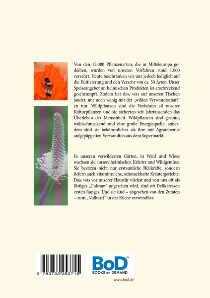 Noch vor wenigen Jahren hat man sie geringschätzig als "Unkraut" abgetan, doch in Zeiten genmanipulierter Tomaten und bestrahlter Gewürze besinnen sich wieder viele auf unverfälschte, wildwachsende Heilkräuter und Wildgemüse. Das Angebot am Wegesrand ist sehr vielfältig, gesund und mittlerweile eine hochbegehrte Delikatesse. Die Natur schenkt uns mit Wildpflanzen einen unermesslich großen Schatz und das zum Nulltarif.Von den 12.000 Pflanzenarten, die in Mitteleuropa gedeihen, wurden von unseren Vorfahren rund 1.000 verzehrt. Heute beschränken wir uns jedoch lediglich auf die Kultivierung und den Verzehr von ca. 50 Arten. Unser Speiseangebot an heimischen Produkten ist erschreckend geschrumpft. Zudem hat das, was auf unseren Tischen landet, nur noch wenig mit der "wilden Verwandtschaft" zu tun. Wildpflanzen sind die Vorfahren all unserer Kulturpflanzen und sie sicherten seit Jahrtausenden das Überleben der Menschheit. Wildpflanzen sind gesund, wohlschmeckend und eine große Energiequelle, außerdem sind sie bekömmlicher als ihre mit Agrarchemie aufgepäppelten Verwandten aus dem Supermarkt. Auch wenn sie kleiner und unscheinbarer wirken als ihre kultivierten Vettern, haben sie große innere Werte.Genetisch haben wir uns über viele Jahrtausende an unsere Wildkräuter als Nahrungsquelle angepasst. Sie weisen genau das Spektrum an Inhaltsstoffen auf, das wir zu unserem Wohlergehen benötigen. Das, was vor unserer Haustür gedeiht und was viele als "Unkraut" bezeichnen, lässt auch uns gedeihen.