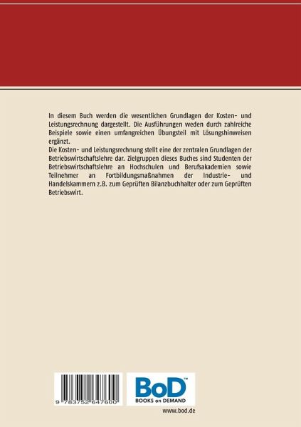 In diesem Buch werden die wesentlichen Grundlagen der Kosten- und Leistungsrechnung dargestellt. Um die Aneignung dieses anspruchsvollen Teilgebietes der Betriebswirtschaftslehre zu unterstützen, werden die Ausführungen durch zahlreiche Beispiele sowie einen umfangreichen Übungsteil mit Lösungshinweisen ergänzt.Die Kosten- und Leistungsrechnung stellt eine der zentralen Grundlagen der Betriebswirtschaftslehre dar. Diesbezügliche Kenntnisse sind für eine gewinnorientierte Unternehmenssteuerung unverzichtbar. Andere Bereiche, wie z.B. das Controlling, bauen auf den Daten der Kostenrechnung auf. Zu Recht gehört die Kostenrechnung deshalb zu den Grundlagenfächern jeder betriebswirtschaftlichen Ausbildung.Die Zielgruppen dieses Buches sind Studenten der Betriebswirtschaftslehre an Hochschulen und Berufsakademien sowie Teilnehmer an Fortbildungsmaßnahmen der Industrie- und Handelskammern z.B. zum Geprüften Bilanzbuchhalter oder zum Geprüften Betriebswirt. Bei der Arbeit mit dem Buch sollten unbedingt die Übungsaufgaben zu den einzelnen Abschnitten zur Sicherung des Lernerfolgs bearbeitet werden.In einer kurzen Einführung wird zunächst die Kostenrechnung in das Gesamtsystem des betrieblichen Rechnungswesens eingeordnet, die wesentlichen Aufgabenbereiche umrissen und die wichtigsten Grundbegriffe erläutert. Die folgenden drei Kapitel umfassen die Kostenarten-, Kostenstellen- und Kostenträgerrechnung im Rahmen der klassischen Vollkostenrechnung. Danach wird die Deckungsbeitragsrechnung als wichtigste Form der Teilkostenrechnung betrachtet. Im dann folgenden Kapitel wird die Plankostenrechnung als Voll- und Teilkostenrechnung skizziert. Abschließend erfolgt eine Darstellung der Prozesskostenrechnung. Das letzte Kapitel stellt die Grundzüge der Zielkostenrechnung dar.