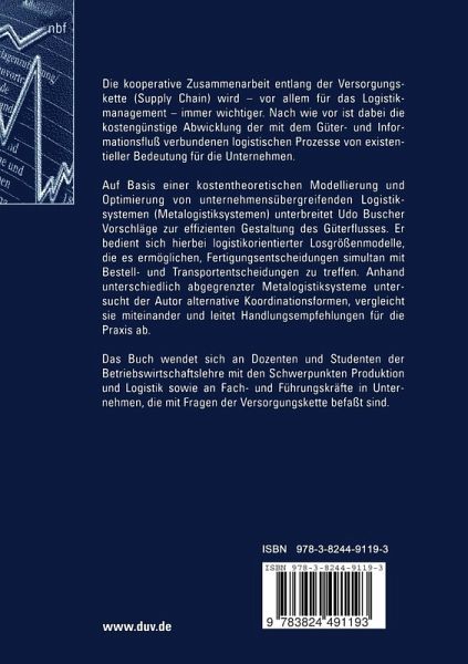Auf Basis einer kostentheoretischen Modellierung und Optimierung von unternehmensübergreifenden Logistiksystemen (Metalogistiksystemen) unterbreitet Udo Buscher Vorschläge zur effizienten Gestaltung des Güterflusses. Anhand unterschiedlich abgegrenzter Metalogistiksysteme untersucht er alternative Koordinationsformen, vergleicht sie miteinander und leitet Handlungsempfehlungen für die Praxis ab.