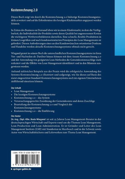 Dieses Buch zeigt wie durch die Kostenrechnung 2.0 bisherige Kostenrechnungsmodelle erweitert und auf die Erfordernisse des heutigen Käufermarktes angepasst werden können.