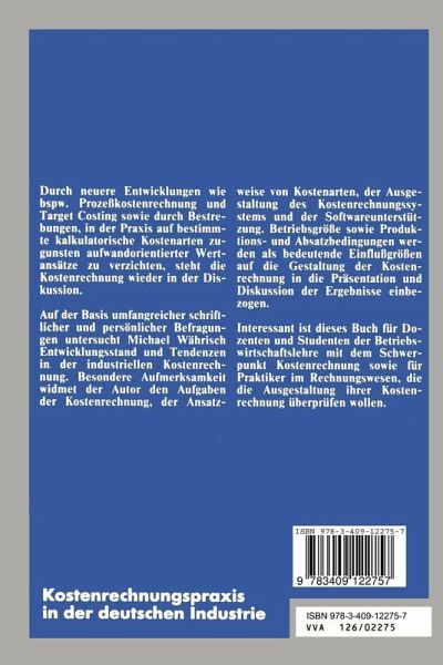 Auf der Basis umfangreicher schriftlicher und persönlicher Befragungen untersucht Michael Währisch Entwicklungsstand und Tendenzen in der industriellen Kostenrechnung. Besondere Aufmerksamkeit widmet der Autor den Aufgaben der Kostenrechnung, der Ansatzweise von Kostenarten, der Ausgestaltung des Kostenrechnungssystems und der Softwareunterstützung. Betriebsgröße sowie Produktions- und Absatzbedingungen werden als bedeutende Einflußgrößen auf die Gestaltung der Kostenrechung in die Präsentation und Diskussion der Ergebnisse einbezogen.