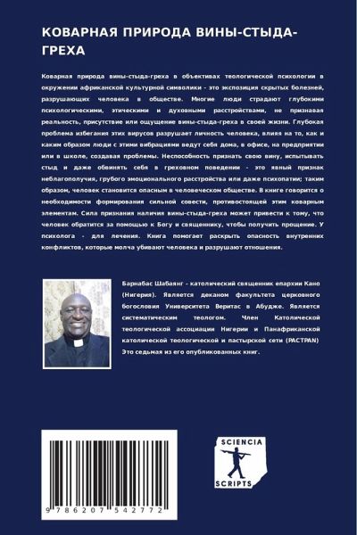 Kowarnaq priroda winy-styda-greha w ob#ektiwah teologicheskoj psihologii w okruzhenii afrikanskoj kul'turnoj simwoliki - äto äxpoziciq skrytyh boleznej, razrushaüschih cheloweka w obschestwe. Mnogie lüdi stradaüt glubokimi psihologicheskimi, äticheskimi i duhownymi rasstrojstwami, ne priznawaq real'nost', prisutstwie ili oschuschenie winy-styda-greha w swoej zhizni. Glubokaq problema izbeganiq ätih wirusow razrushaet lichnost' cheloweka, wliqq na to, kak i kakim obrazom lüdi s ätimi wibraciqmi wedut sebq doma, w ofise, na predpriqtii ili w shkole, sozdawaq problemy. Nesposobnost' priznat' swoü winu, ispytywat' styd i dazhe obwinqt' sebq w grehownom powedenii - äto qwnyj priznak neblagopoluchiq, grubogo ämocional'nogo rasstrojstwa ili dazhe psihopatii; takim obrazom, chelowek stanowitsq opasnym w chelowecheskom obschestwe. V knige goworitsq o neobhodimosti formirowaniq sil'noj sowesti, protiwostoqschej ätim kowarnym älementam. Sila priznaniq nalichiq winy-styda-greha mozhet priwesti k tomu, chto chelowek obratitsq za pomosch'ü k Bogu i swqschenniku, chtoby poluchit' proschenie. U psihologa - dlq lecheniq. Kniga pomogaet raskryt' opasnost' wnutrennih konfliktow, kotorye molcha ubiwaüt cheloweka i razrushaüt otnosheniq.