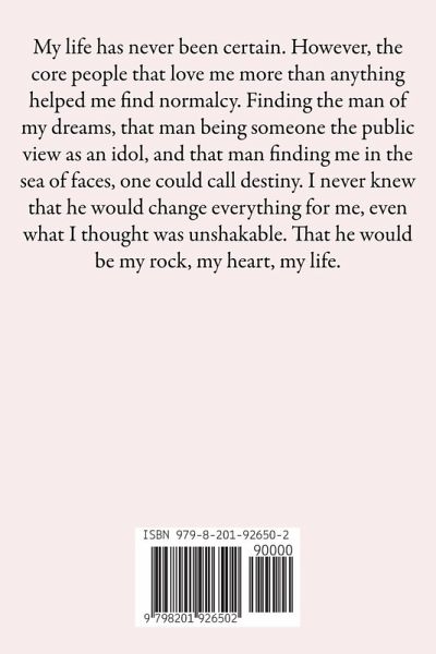 My life has never been certain. However, the core people that love me more than anything helped me find normalcy. Finding the man of my dreams, that man being someone the public view as an idol, and that man finding me in the sea of faces, one could call destiny. I never knew that he would change everything for me, even what I thought was unshakable. That he would be my rock, my heart, my life.