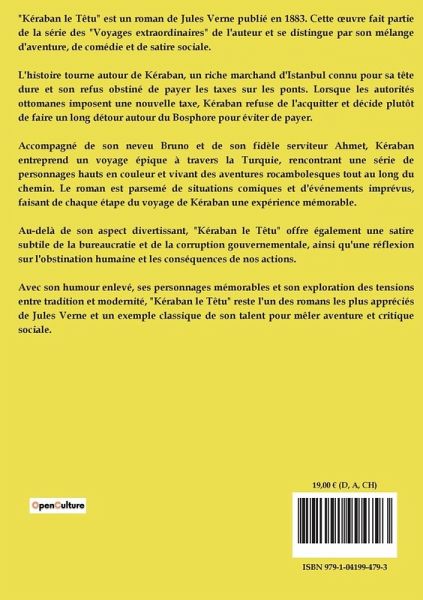 "Kéraban le Têtu" est un roman de Jules Verne publié en 1883. Cette ¿uvre fait partie de la série des "Voyages extraordinaires" de l'auteur et se distingue par son mélange d'aventure, de comédie et de satire sociale. L'histoire tourne autour de Kéraban, un riche marchand d'Istanbul connu pour sa tête dure et son refus obstiné de payer les taxes sur les ponts. Lorsque les autorités ottomanes imposent une nouvelle taxe, Kéraban refuse de l'acquitter et décide plutôt de faire un long détour autour du Bosphore pour éviter de payer. Accompagné de son neveu Bruno et de son fidèle serviteur Ahmet, Kéraban entreprend un voyage épique à travers la Turquie, rencontrant une série de personnages hauts en couleur et vivant des aventures rocambolesques tout au long du chemin. Le roman est parsemé de situations comiques et d'événements imprévus, faisant de chaque étape du voyage de Kéraban une expérience mémorable. Au-delà de son aspect divertissant, "Kéraban le Têtu" offre également une satire subtile de la bureaucratie et de la corruption gouvernementale, ainsi qu'une réflexion sur l'obstination humaine et les conséquences de nos actions. Avec son humour enlevé, ses personnages mémorables et son exploration des tensions entre tradition et modernité, "Kéraban le Têtu" reste l'un des romans les plus appréciés de Jules Verne et un exemple classique de son talent pour mêler aventure et critique sociale.