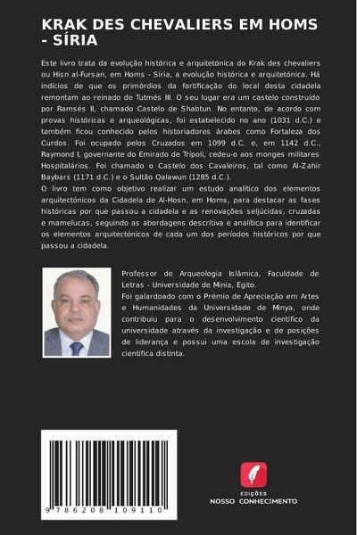Este livro trata da evolução histórica e arquitetónica do Krak des chevaliers ou Hisn al-Fursan, em Homs - Síria, a evolução histórica e arquitetónica. Há indícios de que os primórdios da fortificação do local desta cidadela remontam ao reinado de Tutmés III. O seu lugar era um castelo construído por Ramsés II, chamado Castelo de Shabtun. No entanto, de acordo com provas históricas e arqueológicas, foi estabelecido no ano (1031 d.C.) e também ficou conhecido pelos historiadores árabes como Fortaleza dos Curdos. Foi ocupado pelos Cruzados em 1099 d.C. e, em 1142 d.C., Raymond I, governante do Emirado de Trípoli, cedeu-o aos monges militares Hospitalários. Foi chamado o Castelo dos Cavaleiros, tal como Al-Zahir Baybars (1171 d.C.) e o Sultão Qalawun (1285 d.C.).O livro tem como objetivo realizar um estudo analítico dos elementos arquitectónicos da Cidadela de Al-Hosn, em Homs, para destacar as fases históricas por que passou a cidadela e as renovações seljúcidas, cruzadas e mamelucas, seguindo as abordagens descritiva e analítica para identificar os elementos arquitectónicos de cada um dos períodos históricos por que passou a cidadela.