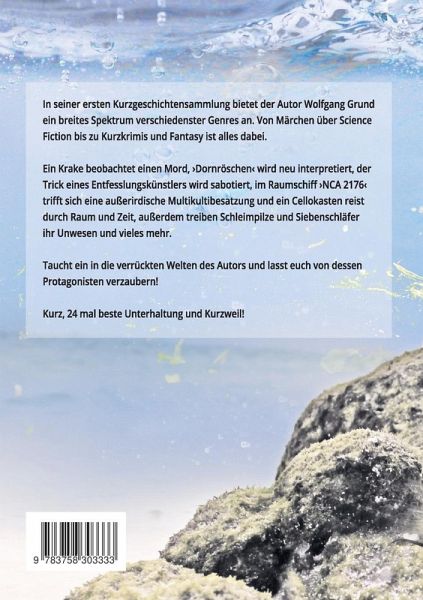 In seiner ersten Kurzgeschichtensammlung bietet der Autor Wolfgang Grund ein breites Spektrum verschiedenster Genres an. Von Märchen über Science Fiction bis zu Kurzkrimis und Fantasy ist alles dabei. Verbindender Faktor sind Behältnisse und alles was darin ist und darin vorgeht. Über Aquarien, Särge, Cellokästen, Litfaßsäulen und DIXI Clos bis zu Holzkästchen, Ringschachteln und Hot Dog Kostümen.Die Namen gebende Krake beobachtet einen Mord aus seinem Aquarium, Dornröschen, in seinem Glassarg, wird neu interpretiert, der Trick eines Entfesslungskünstlers in seiner Holzkiste wird sabotiert, im Raumschiff NCA 2176 trifft sich eine außerirdische Multikultibesatzung vor einem Gerät zur Treibstoffmaterialisierung und ein Cellokasten reist durch Raum und Zeit, außerdem treiben Schleimpilze in ihren Petrischalen und Siebenschläfer in Lebendfallen ihr Unwesen und vieles mehr. Taucht ein in die verrückten Welten des Autors und lasst euch von dessen Protagonisten verzaubern!Kurz, 24 mal beste Unterhaltung und Kurzweil!