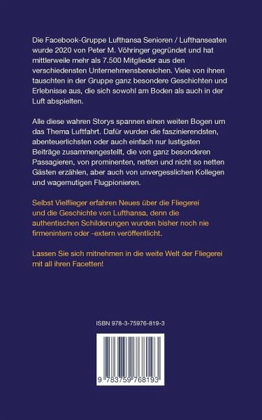 -Kranichblüten- heißt diese Sammlung origineller Geschichten, die alle etwas mit Lufthansa zu tun haben, deren Wappentier seit der Gründung 1926 der Kranich ist. Viele der fast 300 teilweise kuriosen -Blüten-, die von knapp 160 Lufthanseaten der verschiedensten Unternehmensbereiche aus ihrem Arbeitsalltag aufgezeichnet wurden, bringen den Leser zum Schmunzeln, andere machen nachdenklich. Aber es gibt auch anrührende Geschichten von spannenden, dramatischen, bis hin zu traurigen Ereignissen. Neben den vielen für Fluggäste -sichtbaren- Lufthanseaten am Boden und in der Luft erzählen in diesem Buch auch die im Hintergrund tätigen und für den Flugbetrieb unverzichtbaren Mitarbeiter. Diese arbeiten u. a. in der Technik oder in der Fracht, sowohl in Deutschland, aber auch an exotischen Orten in aller Welt. Dabei geht es um Begegnungen mit meist netten, manchmal weniger netten und mitunter prominenten Fluggästen. Aber auch um kuriose und lustige Vorfälle beim Transport von Tieren. Alle diese -Blüten- sind wahre Geschichten. Nicht nur Lufthanseaten und Vielreisende, auch Liebhaber interessanter Erzählungen werden seit der ersten Story von dieser -Blütensammlung- auf eine schöne und originelle Reise rund um die Welt mitgenommen. Interessant und nützlich sind für den Leser sicherlich auch die vielen im ausführlichen Glossar erläuterten Fachbegriffe.