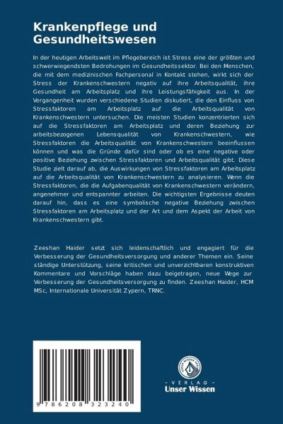In der heutigen Arbeitswelt im Pflegebereich ist Stress eine der größten und schwerwiegendsten Bedrohungen im Gesundheitssektor. Bei den Menschen, die mit dem medizinischen Fachpersonal in Kontakt stehen, wirkt sich der Stress der Krankenschwestern negativ auf ihre Arbeitsqualität, ihre Gesundheit am Arbeitsplatz und ihre Leistungsfähigkeit aus. In der Vergangenheit wurden verschiedene Studien diskutiert, die den Einfluss von Stressfaktoren am Arbeitsplatz auf die Arbeitsqualität von Krankenschwestern untersuchen. Die meisten Studien konzentrierten sich auf die Stressfaktoren am Arbeitsplatz und deren Beziehung zur arbeitsbezogenen Lebensqualität von Krankenschwestern, wie Stressfaktoren die Arbeitsqualität von Krankenschwestern beeinflussen können und was die Gründe dafür sind oder ob es eine negative oder positive Beziehung zwischen Stressfaktoren und Arbeitsqualität gibt. Diese Studie zielt darauf ab, die Auswirkungen von Stressfaktoren am Arbeitsplatz auf die Arbeitsqualität von Krankenschwestern zu analysieren. Wenn die Stressfaktoren, die die Aufgabenqualität von Krankenschwestern verändern, angenehmer und entspannter arbeiten. Die wichtigsten Ergebnisse deuten darauf hin, dass es eine symbolische negative Beziehung zwischen Stressfaktoren am Arbeitsplatz und der Art und dem Aspekt der Arbeit von Krankenschwestern gibt.