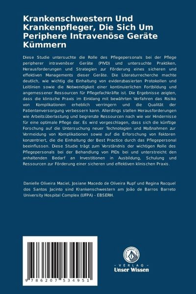 Diese Studie untersuchte die Rolle des Pflegepersonals bei der Pflege peripherer intravenöser Geräte (PIVD) und untersuchte Praktiken, Herausforderungen und Strategien zur Förderung eines sicheren und effektiven Managements dieser Geräte. Die Literaturrecherche machte deutlich, wie wichtig die Einhaltung von evidenzbasierten Protokollen und Leitlinien sowie die Notwendigkeit einer kontinuierlichen Fortbildung und angemessener Ressourcen für Pflegefachkräfte ist. Die Ergebnisse zeigten, dass die klinische Praxis im Einklang mit bewährten Verfahren das Risiko von Komplikationen erheblich verringern und die Qualität der Patientenversorgung verbessern kann. Allerdings stellen Herausforderungen wie Arbeitsüberlastung und begrenzte Ressourcen nach wie vor Hindernisse für eine optimale Pflege dar. Es wird vorgeschlagen, dass sich die künftige Forschung auf die Untersuchung neuer Technologien und Maßnahmen zur Vermeidung von Komplikationen sowie auf die Erforschung von Faktoren konzentriert, die die Einhaltung der Best Practice durch das Pflegepersonal beeinflussen. Diese Studie trägt zum Verständnis der wichtigen Rolle des Pflegepersonals bei der Behandlung von PIDs bei und unterstreicht den anhaltenden Bedarf an Investitionen in Ausbildung, Schulung und Ressourcen zur Förderung einer sicheren und effektiven klinischen Praxis.