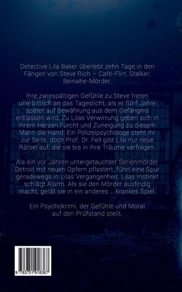 Detective Lila Baker überlebt zehn Tage in den Fängen von Steve Rich - Café-Flirt, Stalker, Beinahe-Mörder.Ihre zwiespältigen Gefühle zu Steve treten unerbittlich an das Tageslicht, als er fünf Jahre später auf Bewährung aus dem Gefängnis entlassen wird. Zu Lilas Verwirrung geben sich in ihrem Herzen Furcht und Zuneigung zu diesem Mann die Hand. Ein Polizeipsychologe steht ihr zur Seite, doch Prof. Dr. Fell gibt Lila nur neue Rätsel auf, die sie bis in ihre Träume verfolgen.Als ein vor Jahren untergetauchter Serienmörder Detroit mit neuen Opfern pflastert, führt eine Spur geradewegs in Lilas Vergangenheit. Lilas Instinkt schlägt Alarm. Als sie den Mörder ausfindig macht, gerät sie in ein anderes ... krankes Spiel.Ein Psychokrimi, der Gefühle und Moral auf den Prüfstand stellt.