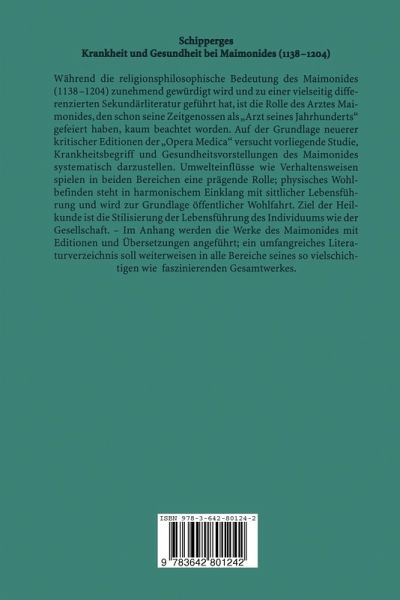 "Maimonides wird von Deutschen kaum noch gelesen", behauptet Friedrich Niewohner in seinem vielbeachteten Wolfenbiitteler Maimonides-Vortrag (1988). In der Tat weisen die Zeugnisse der Sekundarliteratur wie auch die erstaunlichen Bemiihungen urn eine immer noch ausstehende kritische Gesamtedition eher in den angloamerikanischen Raum. Jedenfalls war das Interesse der Offentlichkeit an Maimonides urn die Mitte des 19. Jahrhunderts weitaus lebhafter, als dies heute der Fall ist. "Die neueste Zeit" - schreibt Moritz Steinschneider in Virchows Archiv (1859) - "hat sich viel mit Maimonides beschaftigt." Lediglich der "medizinische Schriftsteller Maimonides" sei dabei schlecht weggekommen und oft genug auch falsch interpretiert worden. In den Hand- und Lehrbiichern der Geschichte der Medizin spielt Maimonides denn auch kaum eine Rolle, wird jedenfalls nicht nach Aussagen von Quellen erster Hand herangezogen. Ais "bedeutendster jiidischer Arzt des muslimischen Kulturkreises in der zweiten Halfte des 12. Jahrhunderts" wird Maimonides lediglich von Karl Sudhoff in "Kurzes Handbuch der Geschichte der Medizin" (Berlin 1922) erwahnt. Der Hohepunkt seines Wirkens liege allerdings nicht auf den Gebieten der Medizin, sondern "auf der theologisch-philosophischen Seite" (S. 149). Zwar zeige er sich auf der Hohe der zeitgenossischen arabischen Medizin, habe sich auch mit Galen kritisch auseinandergesetzt, biete aber in seiner Heilkunde keine "eigene Zutat". In der "Geschichte der Medizin im Oberblick" (Jena 1922) von Theodor Meyer-Steinegg und Karl Sudhoff erscheint Maimonides nur noch als Promotor der Diatetik. EinfluB genommen habe er vor aHem "auf die jiidischen Denker, indem er den Aristoteles neben die Propheten stellte" (S. 159).