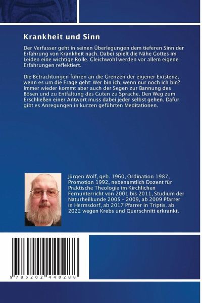 Der Verfasser geht in seinen Überlegungen dem tieferen Sinn der Erfahrung von Krankheit nach. Dabei spielt die Nähe Gottes im Leiden eine wichtige Rolle. Gleichwohl werden vor allem eigene Erfahrungen reflektiert.Die Betrachtungen führen an die Grenzen der eigener Existenz, wenn es um die Frage geht: Wer bin ich, wenn nur noch ich bin? Immer wieder kommt aber auch der Segen zur Bannung des Bösen und zu Entfaltung des Guten zu Sprache. Den Weg zum Erschließen einer Antwort muss dabei jeder selbst gehen. Dafür gibt es Anregungen in kurzen geführten Meditationen.
