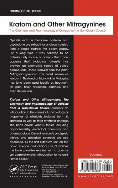 Opioids such as morphine, codeine, and oxycodone are extracts or analogs isolated from a single source: the opium poppy. For a long time, it was believed to be nature's only source of opioids. But it now appears that biological diversity has evolved an alternative source of opioid compounds-those derived from the plant Mitragyna speciosa. This plant, known as Kratom in Thailand or Biak-Biak in Malaysia, has long been used locally as treatment for pain, fever reduction, diarrhea, and even depression. Kratom and Other Mitragynines: The Chemistry and Pharmacology of Opioids from a Non-Opium Source presents an introduction to the chemical and biological properties of alkaloids isolated from M. speciosa as well as their synthetic analogs. The book covers various topics including phytochemistry, medicinal chemistry, and pharmacology. Current research, analgesic effects, and addiction potential are also discussed. As the first extensive text on the basic science and clinical use of Kratom, the book provides readers with a concise yet comprehensive introduction to nature's "other opioid."
