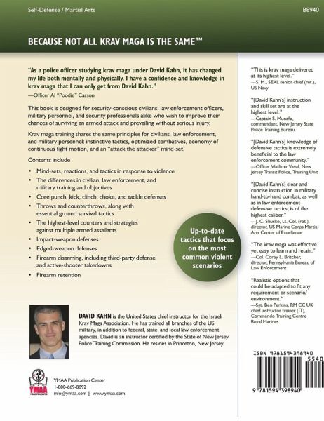 Foreword Acknowledgements Introduction The Professional Level Three Reaction-Proaction Levels Fight Timing The Best Use of This Book Chapter 1—Civilian, Law Enforcement, and Military Krav Maga Training Chapter 2—Defending the Most Common Upper-Body and Lower-Body Attacks, Throws, and Counterthrows Chapter 3—Clinches, Choke and Takedown Defenses, Escorts, and Ground Survival Chapter 4—Impact-Weapon Combatives and Defenses Chapter 5—Firearm Cold Combatives Chapter 6—Defending Edged Weapons: Open Handed and When Your Handgun Is Inoperable Chapter 7—Multiple Assailants Chapter 8—Firearm Defenses Chapter 9—Firearm Retention and Professional Kravist Weapon-Defense Drills Appendix—Use of Force Use of Force and Law Enforcement, by Sergeant First Class Mick McComb, Ret. Use-of-Force Standard: Objective Reasonableness Summary of Force Options Severe Threat Level and Factors Biographies Resources Index