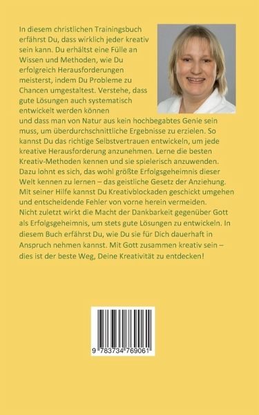 In diesem christlichen Trainingsbuch erfährst Du, dass wirklich jeder kreativ sein kann. Du erhältst eine Fülle an Wissen und Methoden, wie Du erfolgreich Herausforderungen meisterst, indem Du Probleme zu Chancen umgestaltest. Mit den im Buch beschriebenen Methoden kannst Du selbstsicherer in kreativem Denken werden. Auf diese Weise wird es Dir besser gelingen, Deine Kreativität gewinnbringender einzusetzen. Lerne dafür das Geheimnis erfolgreicher Kreativität kennen: Verstehe, dass gute Lösungen auch systematisch entwickelt werden können und dass man von Natur aus kein hochbegabtes Genie sein muss, um überdurchschnittliche Ergebnisse zu erzielen. So kannst Du das richtige Selbstvertrauen entwickeln, um jede kreative Herausforderung anzunehmen. Auf diese Weise entfalten sich Deine Fähigkeiten und die Freude am kreativen Gestalten wird wieder entdeckt. Du erhältst den Zugang zu Deiner Inneren Stimme, welche die Stimme des Heiligen Geistes in Dir ist. Sie ist schlichtweg die effektivste Strategie, um Dich selbst zu kreativen Höchstleistungen zu bringen. Dazu lohnt es sich, das wohl größte Erfolgsgeheimnis dieser Welt kennen zu lernen - das geistliche Gesetz der Anziehung. Mit seiner Hilfe kannst Du Kreativblockaden geschickt umgehen und entscheidende Fehler von vorne herein vermeiden. Die wichtigsten Kapitel dieses Buches sind: -Du bist jeden Tag kreativ - was Dich erwartet -Dein Kreativ-Prozess mit Gott-Gewinne durch konstruktives Denken-Lerne das Gesetz der Anziehung kennen-Definiere Deine Lebensmission -Bewährte Kreativ-Methoden-Die besten Ideen kommen im Flow-Ursachen umdefinieren, um das Problem zu lösen-Kreativblockaden erfolgreich überwinden-Ideen gelungen umsetzen -Ausblick auf eine kreative GesellschaftLerne die besten Kreativ-Methoden kennen und sie spielerisch anzuwenden. Dazu kannst Du die Kraft der Glaubenssätze sinnvoll nutzen. Denn sie haben einen enormen Einfluss auf den Erfolg Deiner Vorhaben. Denn sind sie negativ, dann können sie Ziele nachhaltig untergraben. Wie Du das umgehen kannst, das lernst Du in diesem Trainingsbuch. Nicht zuletzt wirkt die Macht der Dankbarkeit gegenüber Gott als Erfolgsgeheimnis, um stets gute Lösungen zu entwickeln. In diesem Buch erfährst Du, wie Du sie für Dich dauerhaft in Anspruch nehmen kannst. Mit Gott zusammen kreativ sein - dies ist der beste Weg, Deine Kreativität zu entdecken!