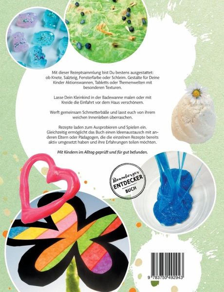 Mit dieser Rezeptsammlung bist Du bestens ausgestattet: ob Knete, Salzteig, Fensterfarbe oder Schleim. Gestalte für Deine Kinder Aktionswannen, Tabletts oder Themenwelten mit besonderen Texturen.Lasse Dein Kleinkind in der Badewanne malen oder mitKreide die Einfahrt vor dem Haus verschönern.Werft gemeinsam Schmetterbälle und lasst euch von ihremweichen Innenleben überraschen.Rezepte laden zum Ausprobieren und Spielen ein.Gleichzeitig ermöglicht das Buch einen Ideenaustausch mit anderen Eltern oder Pädagogen, die die einzelnen Rezepte bereits aktiv umgesetzt haben und ihre Erfahrungen teilen möchten.Mit Kindern im Alltag geprüft und für gut befunden.