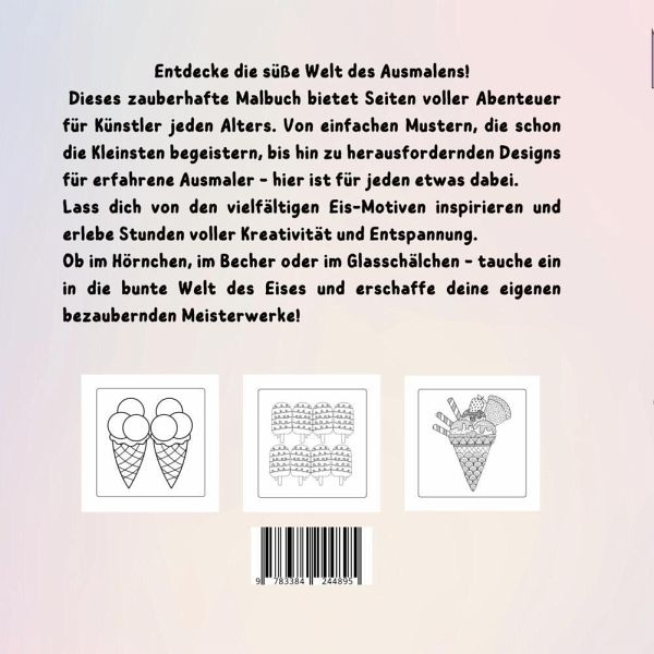 Tauche ein in die "eisige" Welt des Ausmalens! Entdecke "Kreative Eiskreationen - Malbuch für kleine und große Künstler" - das perfekte Erlebnis für alle Eisliebhaber und Kreative! Mit einzigartigen Eis-Motiven bietet dieses Buch stundenlange Unterhaltung für Kinder ab 6 Jahren und Erwachsene gleichermaßen. Von einfachen Designs bis hin zu herausfordernden Mustern - hier ist für jeden Ausmal-Fan etwas dabei!Highlights von "Kreative Eiskreationen":- Vielfältige Eis-Motive: Hörnchen, Becher, Glasschälchen und mehr!- Für alle Altersstufen und Fähigkeiten: Von einfach bis anspruchsvoll!- Entspannung pur: Tauche ein in eine Welt voller Farben und Fantasie!- Perfekt als Geschenk oder für entspannte Stunden zu Hause!Mach dich bereit für kreative Abenteuer und entdecke die süße Seite des Ausmalens!