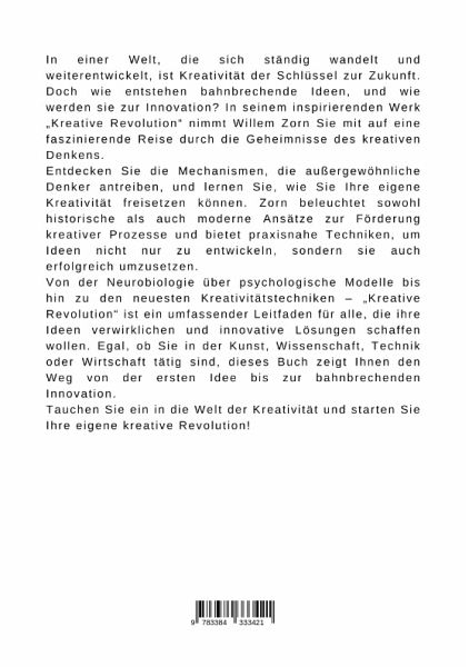 In einer Welt, die sich ständig wandelt und weiterentwickelt, ist Kreativität der Schlüssel zur Zukunft. Doch wie entstehen bahnbrechende Ideen, und wie werden sie zur Innovation? In seinem inspirierenden Werk "Kreative Revolution" nimmt Willem Zorn Sie mit auf eine faszinierende Reise durch die Geheimnisse des kreativen Denkens.Entdecken Sie die Mechanismen, die außergewöhnliche Denker antreiben, und lernen Sie, wie Sie Ihre eigene Kreativität freisetzen können. Zorn beleuchtet sowohl historische als auch moderne Ansätze zur Förderung kreativer Prozesse und bietet praxisnahe Techniken, um Ideen nicht nur zu entwickeln, sondern sie auch erfolgreich umzusetzen.Von der Neurobiologie über psychologische Modelle bis hin zu den neuesten Kreativitätstechniken - "Kreative Revolution" ist ein umfassender Leitfaden für alle, die ihre Ideen verwirklichen und innovative Lösungen schaffen wollen. Egal, ob Sie in der Kunst, Wissenschaft, Technik oder Wirtschaft tätig sind, dieses Buch zeigt Ihnen den Weg von der ersten Idee bis zur bahnbrechenden Innovation.Tauchen Sie ein in die Welt der Kreativität und starten Sie Ihre eigene kreative Revolution!