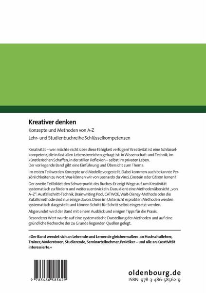 Kreativität - wer möchte nicht über diese Fähigkeit verfügen? Kreativität ist eine Schlüsselkompetenz, die in fast allen Lebensbereichen gefragt ist: In Wissenschaft und Technik, im künstlerischen Schaffen, in der stillen Reflexion - selbst im privaten Leben. Der vorliegende Band gibt eine Einführung und Übersicht zum Thema. Zahlreiche Grafiken sorgen für eine anschauliche Darstellung. Im ersten Teil werden Konzepte und Modelle vorgestellt. Dabei kommen auch bekannte Persönlichkeiten zu Wort: Was können wir von Leonardo da Vinci, Einstein oder Edison lernen? Der zweite Teil bildet den Schwerpunkt des Buches: Er zeigt Wege auf, um Kreativität systematisch zu fördern und weiterzuentwickeln. Dazu dient eine Methodenübersicht "von A-Z": Ausfallschritt-Technik, Brainwriting Pool, CATWOE, Walt-Disney-Methode oder die Zufallsmethode sind nur einige davon. Diese im Unterricht erprobten Methoden werden systematisch dargestellt und können Schritt für Schritt selbst eingesetzt werden. Abgerundet wird der Band mit einem Ausblick und einigen Tipps für die Praxis. Besonderer Wert wurde auf eine systematische Darstellung der Methoden und auf eine gründliche Recherche der zu Grunde liegenden Quellen gelegt. Der Band wendet sich an Lehrende und Lernende gleichermaßen: an Hochschullehrer, Trainer, Moderatoren, Studierende, Seminarteilnehmer, Praktiker - und alle an Kreativität Interessierte.