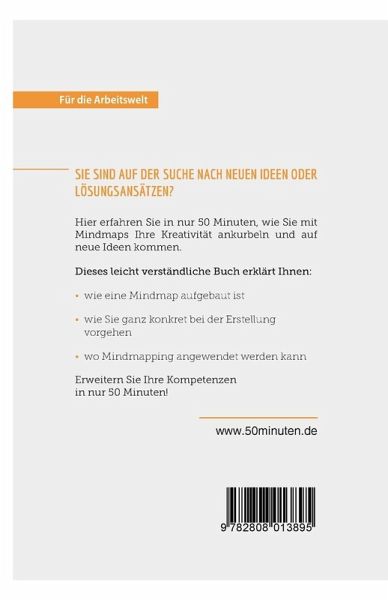 Alles über Mindmapping in nur 50 Minuten Sie suchen nach der Lösung für ein Problem, glauben aber schon alles ausprobiert zu haben? Oder sprudeln Sie vor Ideen nur so über und verlieren langsam den Überblick? Mindmaps helfen, Struktur in die Überlegungen zu bringen, Ideen zu ordnen und mit dieser besonderen Darstellungsweise die Kreativität anzuregen. Die Methode ist leicht zu erlernen und kann außerdem für alle Arten von Projekten eingesetzt werden. Egal ob privat oder beruflich, Planung von Neuem oder Zusammenfassung von Bestehendem ¿ Mindmaps sind für all Ihre individuellen Bedürfnisse geeignet. Ausgehend von einer zentralen Idee schreiben Sie alles auf, was Ihnen einfällt, und kommen dank Schlüsselwörtern, Farben und Querverbindungen auf neue Ideen. Nach 50 Minuten können Sie: ¿ Ihre bereits vorhandenen Ideen strukturieren ¿ alleine oder in der Gruppe kreativ neue Lösungen und Ideen erarbeiten ¿ Schritt für Schritt eine Ihrem Thema entsprechende Mindmap erstellen Starten Sie mit diesen praktischen Tipps voll durch! Über 50MINUTEN.DE Für die Arbeitswelt Was bringt Sie im Job weiter? Die Serie Für die Arbeitswelt der Reihe 50Minuten ist für alle geeignet, die sich ¿ egal auf welchem Abschnitt ihrer Karriere ¿ neue persönliche und berufliche Kompetenzen aneignen, ihr Potenzial optimal ausschöpfen oder einfach ihre Work-Life-Balance hinterfragen wollen. Unsere kompakten Titel enthalten nicht nur eine von Experten erstellte Übersicht über die relevante Theorie, sondern auch konkrete Anleitungen, die von zahlreichen Beispielen unterstützt werden. Die einfache und leicht verständliche Formulierung der komplexen Sachverhalte ist somit der ideale Ausgangspunkt für Angestellte, Arbeitgeber und Arbeitssuchende.