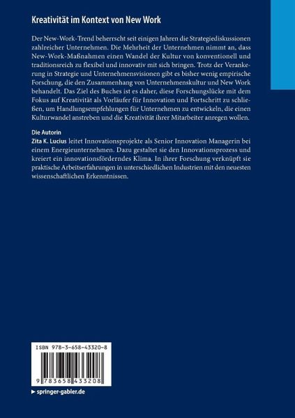 Der New-Work-Trend beherrscht seit einigen Jahren die Strategiediskussionen zahlreicher Unternehmen. Die Mehrheit der Unternehmen nimmt an, dass New-Work-Maßnahmen einen Wandel der Kultur von konventionell und traditionsreich zu flexibel und innovativ mit sich bringen. Trotz der Verankerung in Strategie und Unternehmensvisionen gibt es bisher wenig empirische Forschung, die den Zusammenhang von Unternehmenskultur und New Work behandelt. Das Ziel des Buches ist es daher, diese Forschungslücke mit dem Fokus auf Kreativität als Vorläufer für Innovation und Fortschritt zu schließen, um Handlungsempfehlungen für Unternehmen zu entwickeln, die einen Kulturwandel anstreben und die Kreativität ihrer Mitarbeiter anregen wollen.
