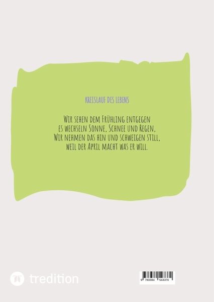In ihrer neuen Gedichtsammlung gibt die Lebensweise, aber immer noch streitbare Autorin Anteil an ihrem Kreislauf des Lebens:hier versammelt sind Rückblicke und Ausblicke in die eigene Biografie, teils humorvoll, teils sarkastisch - immer jedoch das eigene Sein in Beziehung setzend mit dem Leben, das sie umgibt.