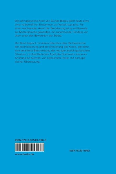 Das portugiesische Kreol von Guinea-Bissau dient heute etwa einer halben Million Einwohnern als Verkehrssprache. Für einen wachsenden Anteil der Bevölkerung ist es mittlerweile zur Muttersprache geworden, mit zunehmender Tendenz vor allem unter den Bewohnern der Städte. Der Band beginnt mit einem Überblick über die Geschichte der Kolonialisierung und der Entstehung des Kreols, gibt dann eine detaillierte Beschreibung der heutigen soziolinguistischen Situation, im Hauptteil einen Abriß der Grammatik sowie als Anhang eine Auswahl von kreolischen Texten mit portugiesischer Übersetzung.