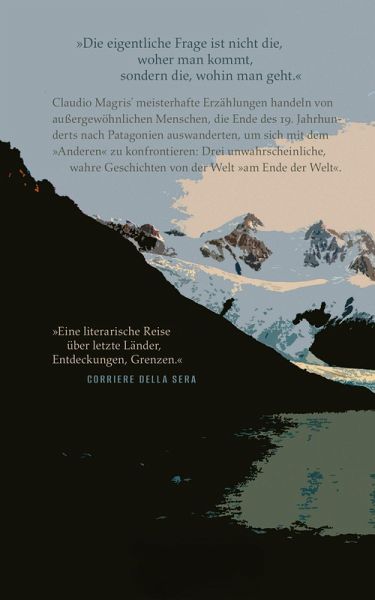 Geschichten von Ländern, Grenzen, Entdeckungen und der Fremde - meisterhaft erzählt von Claudio MagrisDrei unwahrscheinliche, wahre Geschichten von der Welt "am Ende der Welt". Claudio Magris' meisterhafte Erzählungen handeln von außergewöhnlichen Menschen, die Ende des 19. Jahrhunderts nach Patagonien auswanderten, um sich mit dem "Anderen" zu konfrontieren: Ob es der slowenische Ethnologe Janez Benigar ist, der sich mit einer Mapuche vermählt, der französische Anwalt Orélie-Antoine de Tounens, der sich zum König von Araukanien ausrufen lässt und einen hoffnungslosen Freiheitskampf initiiert, oder schließlich Schwester Angela Vallese aus dem Piemont, die ihr Leben für die verfolgten Ureinwohner Feuerlands opfert. Magris erzählt die erstaunliche Geschichte unbekannter Helden, die die Fremde zur Heimat machten.