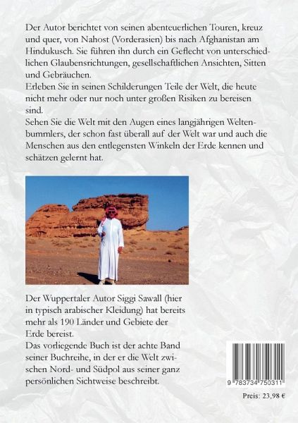 Der Autor berichtet von seinen abenteuerlichen Touren, kreuz und quer, von Nahost (Vorderasien) bis nach Afghanistan am Hindukusch. Sie führen ihn durch ein Geflecht von unterschiedlichen Glaubensrichtungen, gesellschaftlichen Ansichten, Sitten und Gebräuchen.Erleben Sie in seinen Schilderungen Teile der Welt, die heute nicht mehr oder nur noch unter großen Risiken zu bereisen sind.Sehen Sie die Welt mit den Augen eines langjährigen Weltenbummlers, der schon fast überall auf der Welt war und auch die Menschen aus den entlegensten Winkeln der Erde kennen und schätzen gelernt hat.