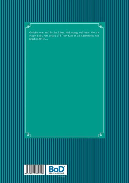 Gedichte vom und für das Leben. Mal traurig, mal heiter. Von der ewigen Liebe, vom ewigen Tod. Vom Kind in der Krebsstation, vom Engel im BMW......
