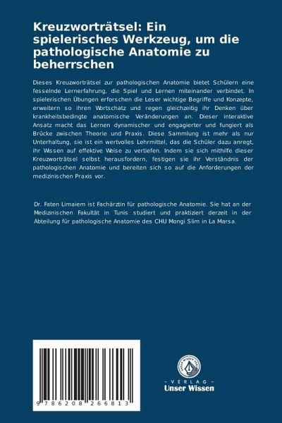 Dieses Kreuzworträtsel zur pathologischen Anatomie bietet Schülern eine fesselnde Lernerfahrung, die Spiel und Lernen miteinander verbindet. In spielerischen Übungen erforschen die Leser wichtige Begriffe und Konzepte, erweitern so ihren Wortschatz und regen gleichzeitig ihr Denken über krankheitsbedingte anatomische Veränderungen an. Dieser interaktive Ansatz macht das Lernen dynamischer und engagierter und fungiert als Brücke zwischen Theorie und Praxis. Diese Sammlung ist mehr als nur Unterhaltung, sie ist ein wertvolles Lehrmittel, das die Schüler dazu anregt, ihr Wissen auf effektive Weise zu vertiefen. Indem sie sich mithilfe dieser Kreuzworträtsel selbst herausfordern, festigen sie ihr Verständnis der pathologischen Anatomie und bereiten sich so auf die Anforderungen der medizinischen Praxis vor.