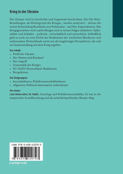 Die Ukraine wird in Geschichte und Gegenwart beschrieben. Die Ost-West-Beziehungen, als Hintergrund des Krieges , werden analysiert - ebenso die innere Entwicklung Russlands zum Putinismus und Neo-Imperialismus. Das Kriegsgeschehen wird nachvollzogen und in seinen Folgen diskutiert: Opferzahlen und Schäden - politisch , wirtschaftlich und menschlich. Schließlich geht es auch um eine Kritik der Reaktionen der westlichen Bündnisse und insbesondere Deutschlands sowie um die langfristigen Perspektiven, die sich im Zusammenhang mit dem Krieg ergeben.