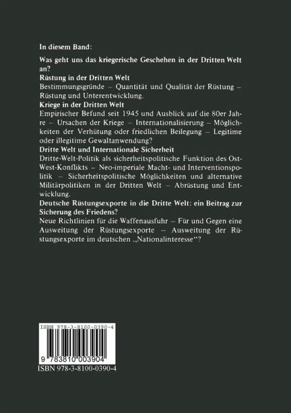 Analyse.- 1. Einführung: Was geht uns das kriegerische Geschehen in der Dritten Welt an?.- 2. Rüstung in der Dritten Welt.- 3. Kriege in der Dritten Welt.- 4. Dritte Welt und Internationale Sicherheit.- 5. Deutsche Rüstungsexporte in die Dritte Welt: ein Beitrag zur Sicherung des Friedens?.- Materialien.- 1. Rüstung und Dritte Welt.- 2. Kriege in der Dritten Welt.- 3. Dritte Welt und internationale Sicherheit.- 4. Deutsche Rüstungsexporte in die Dritte Welt.