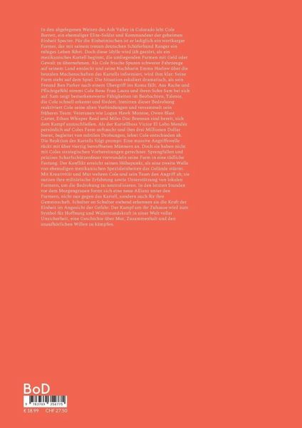 In den abgelegenen Weiten des Ash Valley in Colorado lebt Cole Barrett, ein ehemaliger Elite-Soldat und Kommandeur der geheimen Einheit Specter. Für die Einheimischen ist er lediglich ein wortkarger Farmer, der mit seinem treuen deutschen Schäferhund Ranger ein ruhiges Leben führt. Doch diese Idylle wird jäh gestört, als ein mexikanisches Kartell beginnt, die umliegenden Farmen mit Geld oder Gewalt zu übernehmen. Als Cole frische Spuren schwerer Fahrzeuge auf seinem Land entdeckt und seine Nachbarin Emma Harlow über die brutalen Machenschaften des Kartells informiert, wird ihm klar: Seine Farm steht auf dem Spiel. Die Situation eskaliert dramatisch, als sein Freund Ben Parker nach einem Übergriff ins Koma fällt. Aus Rache und Pflichtgefühl nimmt Cole Bens Frau Laura und ihren Sohn Sam bei sich auf. Sam zeigt bemerkenswerte Fähigkeiten im Beobachten, Talente, die Cole schnell erkennt und fördert. Inmitten dieser Bedrohung reaktiviert Cole seine alten Verbindungen und versammelt sein früheres Team: Veteranen wie Logan Hawk Monroe, Owen Blast Carter, Ethan Whisper Reed und Miles Doc Brennan sind bereit, sich dem Kampf anzuschließen. Als der Kartellboss Victor El Lobo Mendéz persönlich auf Coles Farm auftaucht und ihm drei Millionen Dollar bietet, begleitet von subtilen Drohungen, lehnt Cole entschieden ab. Die Reaktion des Kartells folgt prompt: Eine massive Angriffswelle rückt mit über vierzig bewaffneten Männern an. Doch sie haben nicht mit Coles strategischen Vorbereitungen gerechnet: Sprengfallen und präzises Scharfschützenfeuer verwandeln seine Farm in eine tödliche Festung. Der Konflikt erreicht seinen Höhepunkt, als eine zweite Welle von ehemaligen mexikanischen Spezialeinheiten das Gelände stürmt. Mit Kreativität und Mut wehren Cole und sein Team den Angriff ab; sie nutzen ihre militärische Erfahrung sowie Unterstützung von lokalen Farmern, um die Bedrohung zu neutralisieren. In den letzten Stunden vor dem Morgengrauen formt sich eine neue Allianz unter den Farmern, nicht nur gegen das Kartell, sondern auch für ihre Gemeinschaft. Schulter an Schulter stehend erkennen sie die Kraft der Einheit im Angesicht der Gefahr. Der Kampf um ihr Zuhause wird zum Symbol für Hoffnung und Widerstandskraft in einer Welt voller Unsicherheit, eine Geschichte über Mut, Zusammenhalt und den unaufhörlichen Willen zu kämpfen.