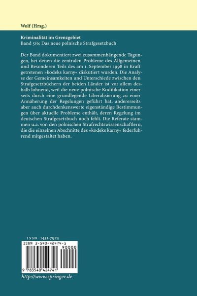 Einführung.- Das neue polnische StGB vom 6. Juni 1997.- Allgemeiner Teil.- Theoretische Fragen des Verbrechensaufbaus - Die Grundlage der Regelungen im neuen polnischen Strafgesetzbuch.- Das System der Rechte und Pflichten in Notsituationen und seine Umsetzung im polnischen und im deutschen Recht.- Einige Bemerkungen über die Rechtfertigungs-und Entschuldigungsgründe im neuen polnischen Strafgesetzbuch.- Die Notwehr im neuen polnischen Strafgesetzbuch.- Unterlassungsdelikte im neuen polnischen Strafgesetzbuch.- Die Grundstruktur der polnischen und der deutschen Täterschaftslehre (Art. 18 1 k.k., 25 StGB).- Die Strafbarkeit der Teilnahme nach neuem polnischen Recht (Kodeks karny vom 06.06.1997).- Das System der strafrechtlichen Konkurrenzlehre und seine Umsetzung im polnischen und deutschen Strafrecht.- Das Sanktionensystem im polnischen Strafrecht.- Allgemeine Grundsätze der gerichtlichen Strafzumessung.- Wiedergutmachung im neuen polnischen Strafrecht.- Bewährungsmaßnahmen im polnischen Strafrecht.- Besonderer Teil.- Die vorsätzlichen Tötungsdelikte im polnischen und deutschen Strafrecht.- Die Strafbarkeit wegen HIV-Infizierung (Art. 161 1 k.k.).- Straftaten gegen die Verkehrssicherheit im polnischen Strafrecht.- Die Freiheitsdelikte im polnischen und deutschen Strafrecht.- Straftaten gegen die sexuelle Selbstbestimmung und die Sittlichkeit (Kap. XXV des polnischen StGB).- Die Straftat der Vergewaltigung in Polen.- Straftaten gegen die Rechtspflege im polnischen Strafrecht.- XXXV k.k.: Straftaten gegen das Vermögen.- Straftaten gegen den Wirtschaftsverkehr (Kapitel XXXVI k.k.).- Computerkriminalität im neuen polnischen Strafgesetzbuch.- Verzeichnis der Referenten.