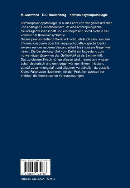 Die letzte deutschsprachige "Kriminalpsychopathologie" ist von Karl Birnbaum im Jahre 1931 verfaßt worden. Es handelt sich um eine Anwendung der damaligen deutschen Psychiatrie auf die Phänomene des Verbrechens. Ein derartiges Vorge hen ist heute nicht mehr ausreichend. Kriminalpsychopathologie darf sich nicht in Kriminalpsychiatrie erschöpfen, sondern muß als eigenständige Disziplin verstan den werden, welche die Erkenntnisse der gesamten Psycho-, Bio- und Soziowissen schaften auswertet. Zur Bestimmung ihres Bereiches hat sich Kriminalpsychopa thologie mit Normativitäten zu befassen. Daher stehen kriminalisierende und pathologisierende Normativität als erkenntnistheoretische Gesichtspunkte an vor derster Stelle. Dieses Buch wendet sich an den in der Praxis stehenden Strafjuristen und Kri minalisten. Es handelt sich nicht um ein Lehrbuch. Erreicht werden soll ein Einstieg in das schwer überschaubare Gebiet der Kriminalpsychopathologie vornehmlich unter dem wesentlichen Gesichtspunkt der Gefiihrlichkeit. Dem vorgelegten Text liegt eine jahrzehntelange Beschäftigung und Erfahrung mit den bearbeiteten Problemen zugrunde. Mein ehemaliger Doktorand E. C. Rau tenberg ist in mehrjähriger Zusammenarbeit in die Rolle des Mitautors hineinge wachsen. Besonderer Dank gebührt Frau Oberstaatsanwältin Dagmar Pohl-Laukamp, Justizministerium Kiel, für die kritische Durchsicht des Manuskriptes.
