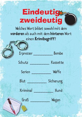 Der kleine Block enthält kleine aber feine Krimirätsel zum überallhin mitnehmen: 32 knifflige Aufgaben für Detektive oder Rätselfreunde, die in jede Hosentasche passen.