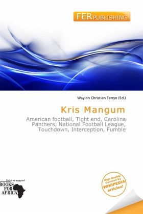 Please note that the content of this book primarily consists of articles available from Wikipedia or other free sources online. Kris Thomas Mangum (born August 15, 1973 in Magee, Mississippi) is a former American football player who played tight end for the Carolina Panthers of the National Football League throughout his entire NFL career. He attended the University of Mississippi. His father, John Mangum, Sr. and his brother, John Mangum, Jr. are both former NFL players. Mangum caught 36 passes for 640 yards and eight touchdowns and added 113 tackles, four sacks, two interceptions and two fumble recoveries as a senior. He ended his college football career ranked 14th all-time in receptions at Ole Miss, collecting 74 catches for 729 yards during three seasons, after transferring from the University of Alabama following his freshman year. As a junior in 1995, he was an All-Southeastern Conference selection, while making nine starts.