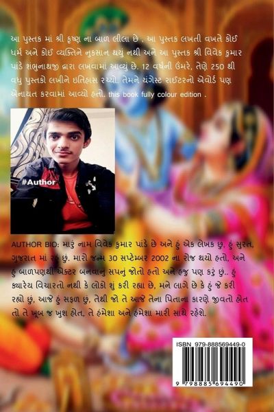 In This Book There Is Krishna Baal Lila With Complete Details.During Writing This Book No Character And No Religion Are Harmed. It's Only For Study Purpose. Written By Mr Vivek Kumar Pandey. winner youngest writer award 1st rank in india 2020.He is only one writer can publish 830 + own book that was greatest successfull in his life.This All Credit Goes To My Super Hero Daddy.this book fully colour edition.