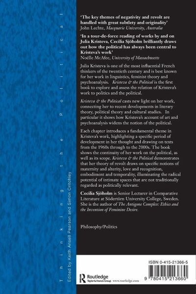 Julia Kristeva is one of the most influential French thinkers of the twentieth century and is best known for her work in linguistics. Even though her work has been very influential, the political implications of her writings have so far been neglected. Kristeva and the Political is the first book to explore the relation of Kristeva's work to the political and casts new light on her work, connecting her to recent developments in literary theory, political theory, and cultural studies. In particular it shows how Kristeva's account of the unconscious and psychoanalysis generally, widens the notion of the political.