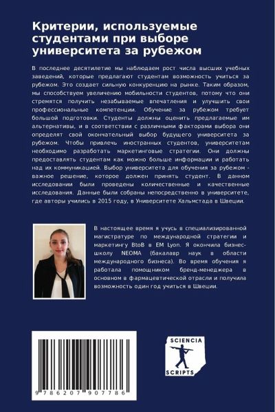 V poslednee desqtiletie my nablüdaem rost chisla wysshih uchebnyh zawedenij, kotorye predlagaüt studentam wozmozhnost' uchit'sq za rubezhom. Jeto sozdaet sil'nuü konkurenciü na rynke. Takim obrazom, my sposobstwuem uwelicheniü mobil'nosti studentow, potomu chto oni stremqtsq poluchit' nezabywaemye wpechatleniq i uluchshit' swoi professional'nye kompetencii. Obuchenie za rubezhom trebuet bol'shoj podgotowki. Studenty dolzhny ocenit' predlagaemye im al'ternatiwy, i w sootwetstwii s razlichnymi faktorami wybora oni opredelqt swoj okonchatel'nyj wybor buduschego uniwersiteta za rubezhom. Chtoby priwlech' inostrannyh studentow, uniwersitetam neobhodimo razrabotat' marketingowye strategii. Oni dolzhny predostawlqt' studentam kak mozhno bol'she informacii i rabotat' nad ih kommunikaciej. Vybor uniwersiteta dlq obucheniq za rubezhom - wazhnoe reshenie, kotoroe dolzhen prinqt' student. V dannom issledowanii byli prowedeny kolichestwennye i kachestwennye issledowaniq. Dannye byli sobrany neposredstwenno w uniwersitete, gde awtory uchilis' w 2015 godu, w Uniwersitete Hal'mstada w Shwecii.