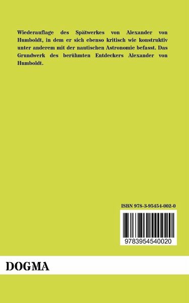 Wiederauflage des Spätwerkes von Alexander von Humboldt, in dem er sich ebenso kritisch wie konstruktiv unter anderem mit der nautischen Astronomie befasst. Das Grundwerk des berühmten Entdeckers Alexander von Humboldt.