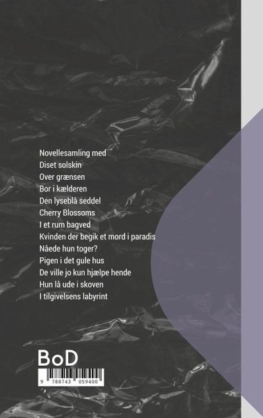 Novellesamling med Diset solskin Over grænsen Bor i kælderen Den lyseblå seddel Cherry Blossoms I et rum bagved Kvinden der begik et mord i paradis Nåede hun toger? Pigen i det gule hus De ville jo kun hjælpe hende Hun lå ude i skoven I tilgivelsens labyrint